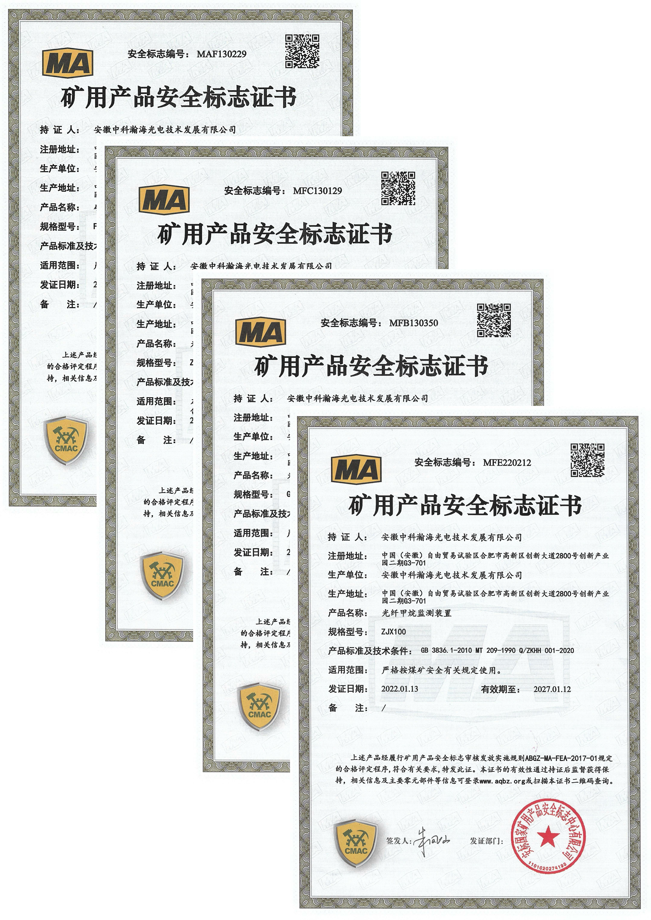 矿用产品安全标志证书