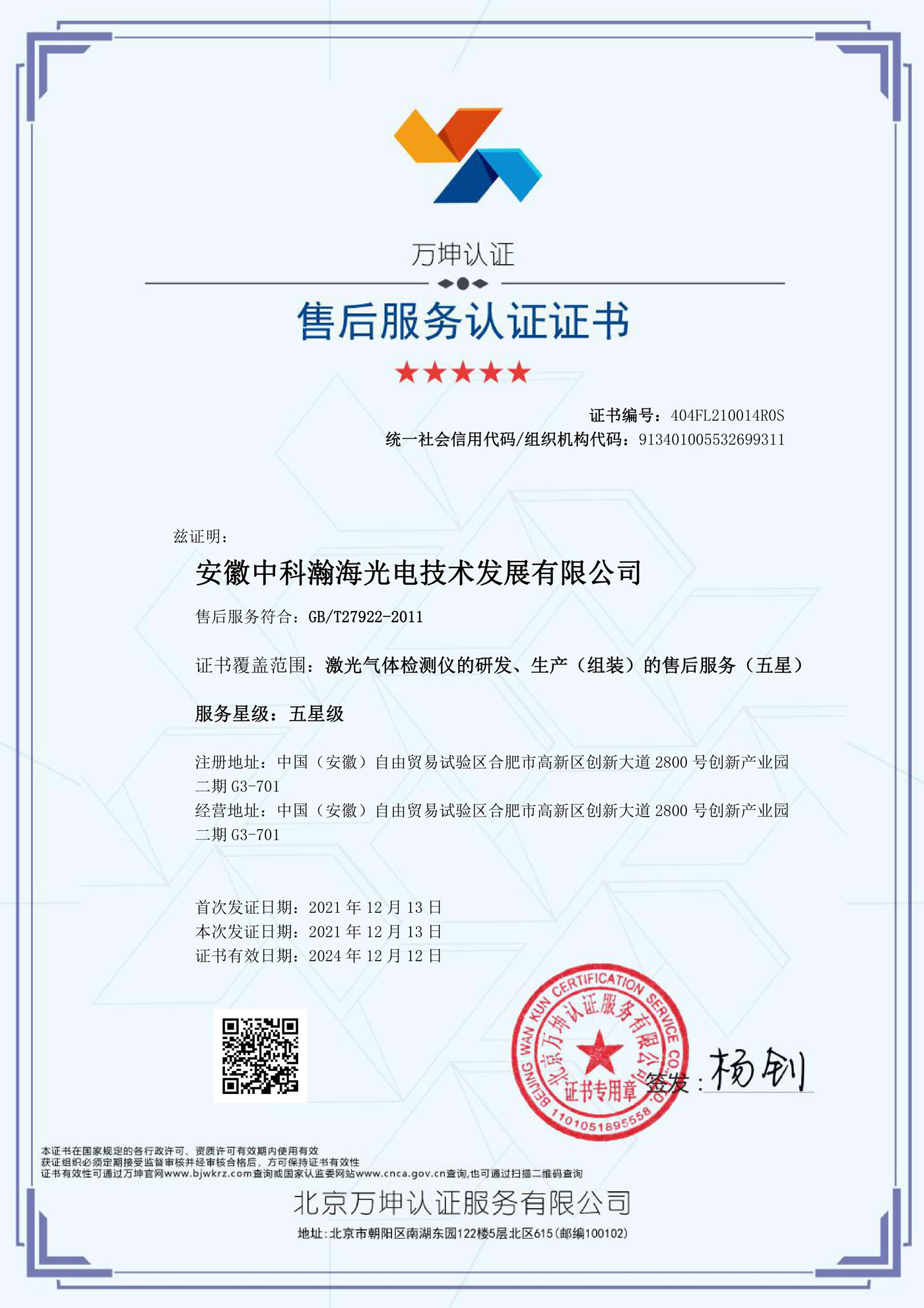 售后服务认证证书