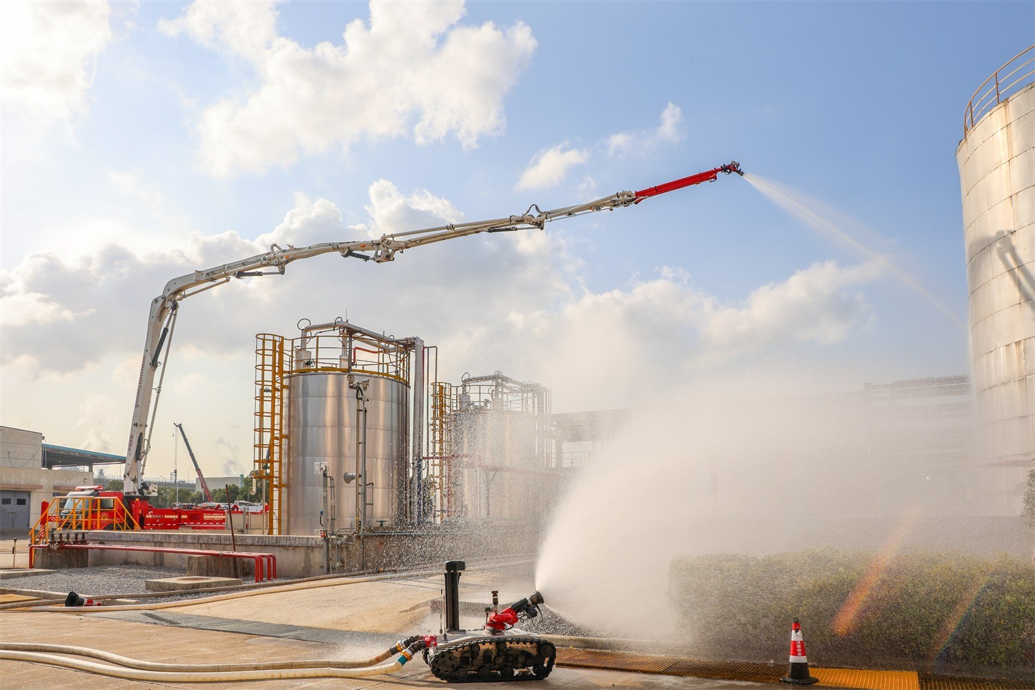 针对森林边缘火灾、废弃厂房火灾、油罐火灾等特殊场景,机器人同样具备极强的适配性。在森林边缘火灾场景中,可凭借履带式底盘穿越复杂地形,双层喷淋防高温设计抵御林间高温,消防水炮压制火势蔓延,防止火灾向居民区扩散;在废弃厂房、油罐火灾场景中,可深入危险区域,精准检测有毒有害气体及易燃易爆物质浓度,通过消防水炮控火降温,为专业救援队伍后续处置创造安全条件,实现“无人先探、精准处置”的救援目标。