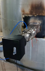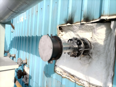2022年8月,瀚海光电原位贯穿式激光气体分析仪在全国第四大垃圾发电厂——河南焦作垃圾发电厂完成安装并投入运行,该设备可对碳排放和氨逃逸实现在线监测,现场测试数据远优于同机运行的进口设备。本次现场实测针对性开展设备布设,其中在电厂1号炉排放烟道安装1台烟道贯穿式激光检测系统,用于实时监测二氧化碳浓度;在2号炉排放烟道安装1台同类型检测系统,用于实时监测氨逃逸浓度。考虑到电厂排放烟道为直径3米的圆形结构,为保障监测数据稳定性,设备被选定安装在排放气流相对稳定的32米高度位置。同时,为避免烟道内水汽、粉尘对光学部件造成污染以确保设备长期稳定运行,在光学窗口处利用电厂现有仪表风定期进行吹扫。监测结果可直接在现场仪表上显示,同时通过光纤传输至电厂监控系统,实现了与厂内生产系统的顺利对接。