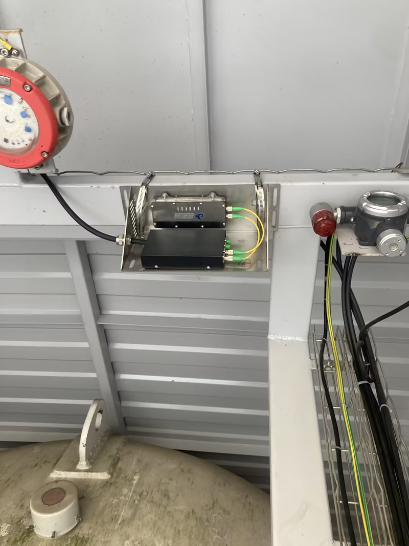 2025年3月中石化合肥巢湖LNG加气站为满足站区严格的安全监测需求,针对LNG箱式撬装站储气罐区域的安全防控,特安装(甲烷)壁挂式无源激光监测系统,对储气罐前后及外部等目标区域实施精准监测。在上述区域部署1套(甲烷)壁挂式无源激光监测系统,其包含6个终端,能够全方位覆盖储气罐周边可能发生甲烷泄漏的关键点位。通过实时捕捉甲烷气体对激光的吸收特性变化,实现对区域内甲烷浓度的不间断监测,为站区安全生产提供可靠的技术保障。一旦检测到甲烷浓度超过预先设定的安全阈值,系统将立即触发报警机制,为加气站在储气环节筑牢安全防线,有力保障站区安全生产与周边人员、设施的安全。